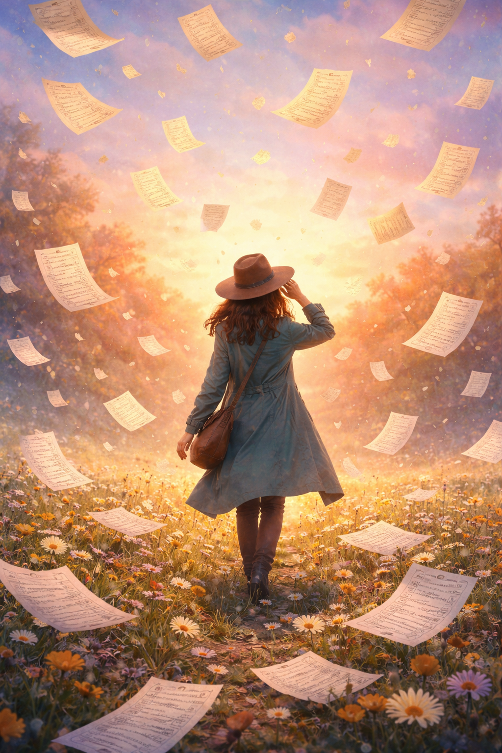 The Curator would sit on a wooden bench at the edge of the field and open a book that had no words.