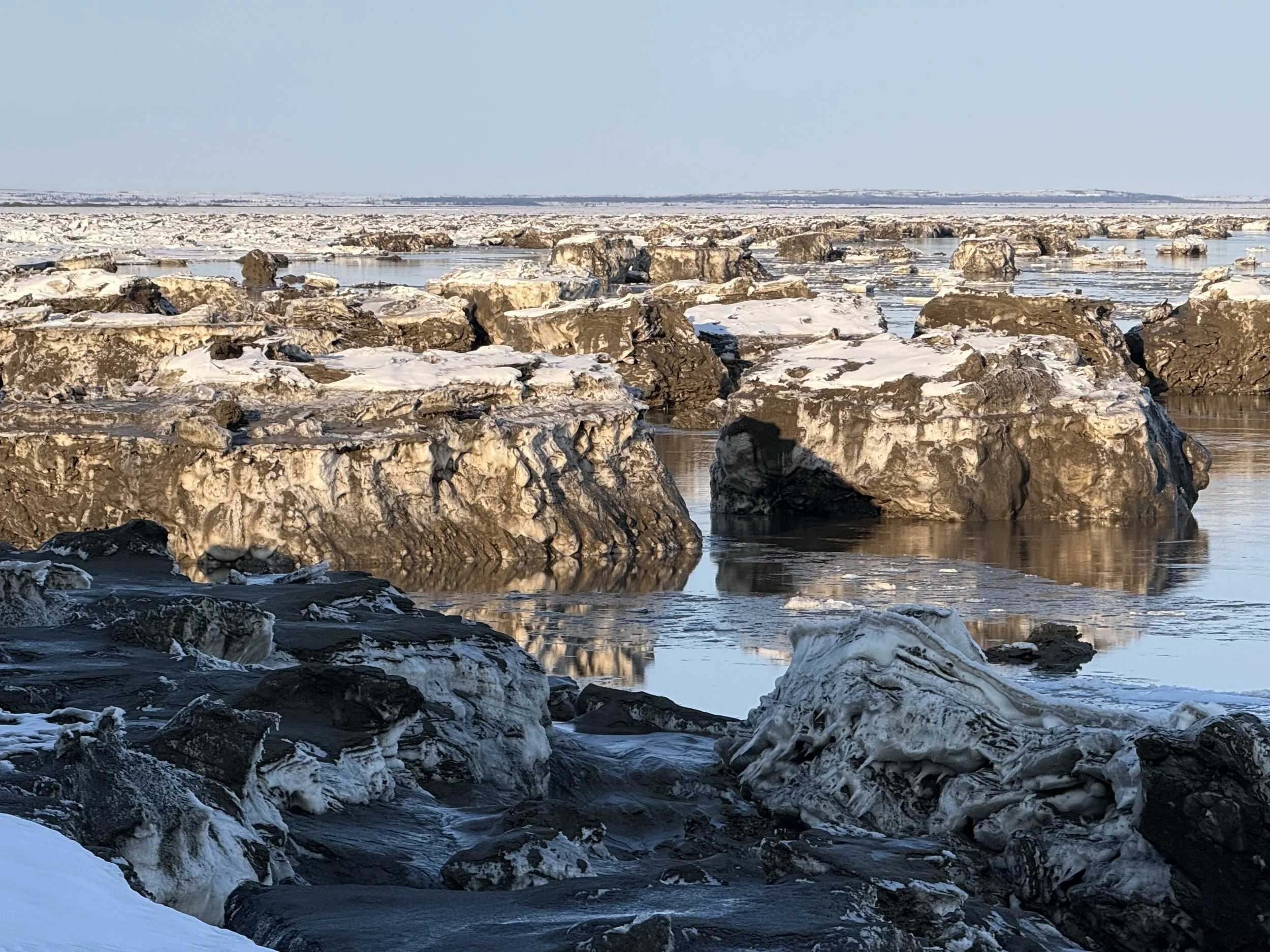 Like giant ice sculptures drifting downstream — merrily, merrily—until the birds come home~